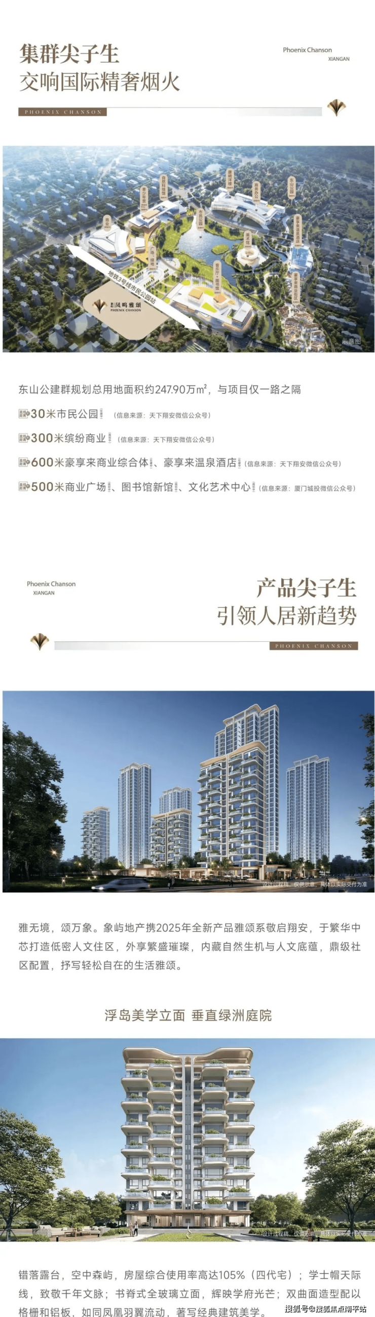 厦门象屿·凤鸣雅颂作为象屿地产“雅颂系”在厦门的首发力作,定位为岛外高端改善型住宅标杆。项目以“第四代生态住宅”为核心标签,融合宋代美学与现代科技,通过空中庭院、垂直绿化系统及104%的综合空间使用率(部分户型赠送面积超30㎡),重新定义生态人居标准。