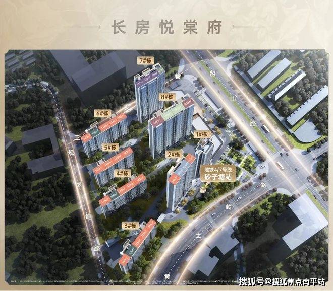 方圆900米范围内,坐拥韶山路、芙蓉路双干道,更拥揽地铁1号线、3号线、4号线、7号线(在建,预计2027年建成通车),傲立地铁4/7号线砂子塘上盖,通行全城无碍,纵观长沙,止此悦棠府。