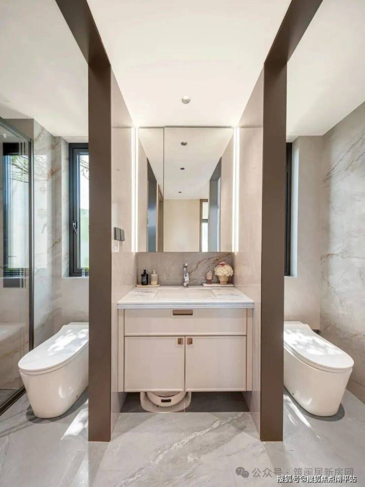 l屋内除客厅和卧室外几乎全用岩板通铺(造价远高于其它项目的瓷砖,极少项目舍得用),算是开创厦门首例。