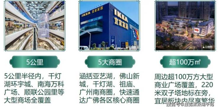商业——3公里范围内,超100万方大型商业广场覆盖,15分钟覆盖千灯湖、亚艺、祖庙、佛山新城板块!
