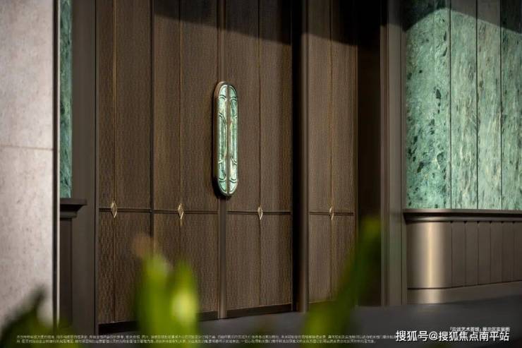 归家第一眼,即是显赫门庭。 台阶由黑金沙整石铺就,取南洋骑楼拱券的绰约风姿,奢立「七拱门廊」,点缀宝格丽绿奢石、方胜纹、几何天花。当2.4吨铜门缓缓开启,如同打开一部厦门家族史诗。