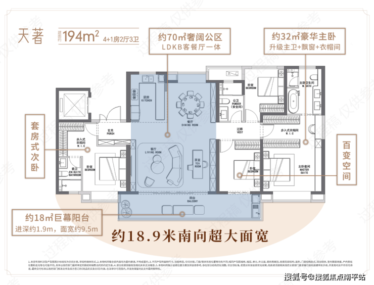 ·约70㎡LDKB一体奢阔公区+约32㎡豪华主卧尺度,大开大合的空间,带来与别墅、洋房同等尺度感,能够更好的满足多类型家庭各阶段生活所需,灵活实用,延长居住周期。