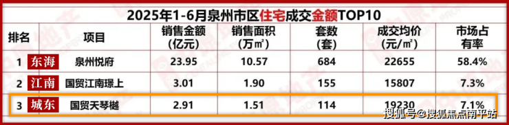 而正是于此稀贵高地之上,「国贸天琴樾」以顶豪基因,跃居泉州高端资产配置优选!以超1.9万/㎡的成交均价,强势登顶2025年1-6月城东住宅成交金额TOP1、跻身泉州TOP3!市场高度认证其价值。