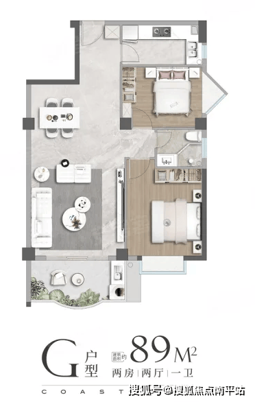 主力小户型囊括82㎡、84㎡、89㎡三种面积段,却清一色设计为两房一卫。这与岛内80㎡+面积段主流三房两卫配置严重脱节。