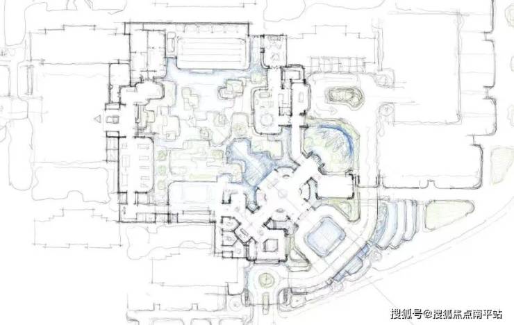 城市街角到社区由点到面延伸,在平面布局的制约中独创以 八角厅 为核心的社区礼仪起点, 糅合传统空间美学与现代生活观念,追求极致的秩序性和仪式感。