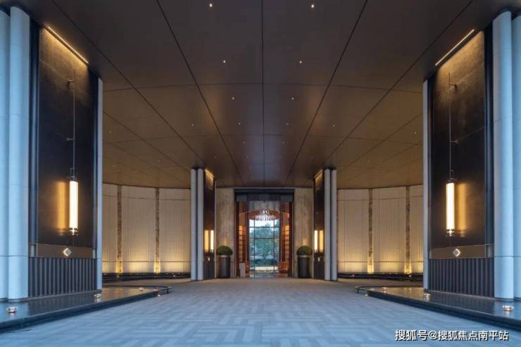 归家的仪式感,从隐奢门庭的前场徐徐开启。长约50米的扇形雨棚如华盖般舒展。六扇叠层石材屏风与十二道景屏静立于 叠级水景 之上,如翼伸展,环抱相迎,共同围合出一方归家前的灰空间。这里,是抵达宁静的过渡庭院,也是归途中的心灵栖所。