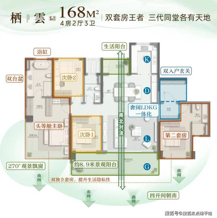 值得一提的是,项目创新性地提出约30%的阳台赠送、双玄关布局、LDKG一体化(客餐厨阳台一体化)空间、270°主卧环幕设计以及强调各房间舒适度的“卧室平权”理念,从每一处细节提升居住舒适度与功能实用性,力求实现“零短板”的改善型人居标杆目标。