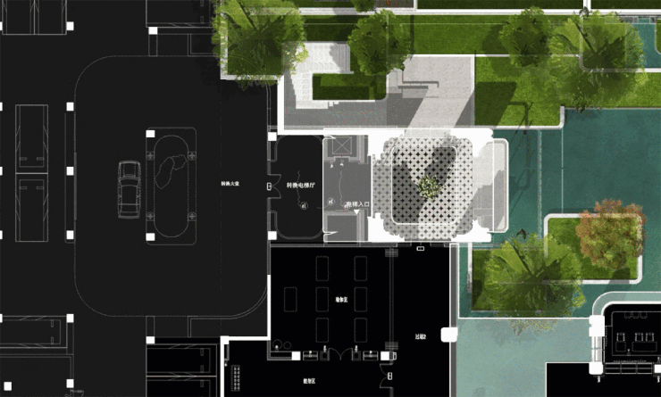 「中央车站」是架空车库内、会所入口前一处酒店级落客区。