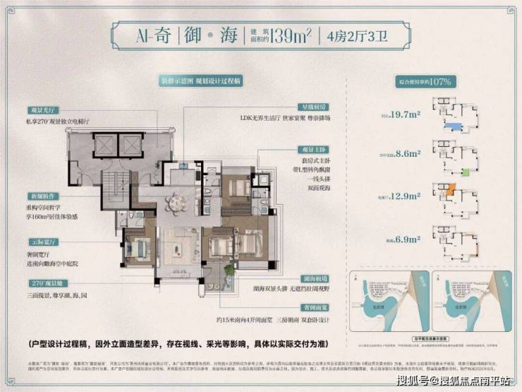 ▍超高得房率:约107%综合使用效率,可比肩传统180㎡户型