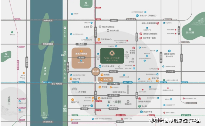 项目位于开福区营盘路与黄兴北路交汇处,建面约2.39万方,容积率约2.4,绿地率35%,是主城区稀缺的低密盘。