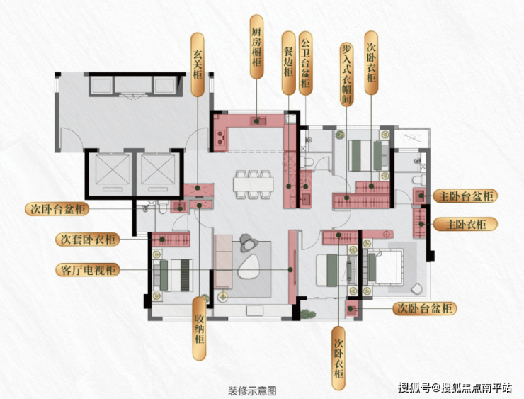 建面约139 ㎡户型收纳系统示意