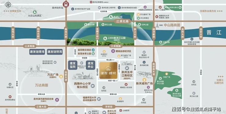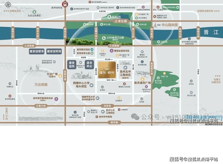 在这里,便捷交通路网可 迅速无缝接驳全城;周边有洲际皇冠假日酒店、鲤城万达广场(在建,招商中)、 泉州演艺剧场综合体(在建中,预计2026年投用) 等商业/商务综合体环伺;还有智慧公园、滨江公园等自然生态景观资源。