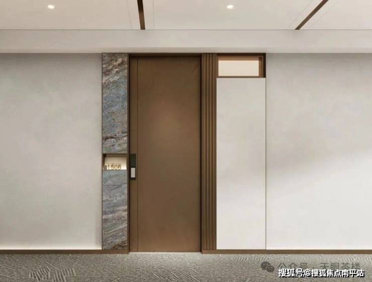 每一户的大门,都采用奢石妆点, 对比传统新盘钢制木门,更显高级感,这都是真金白银的投入。