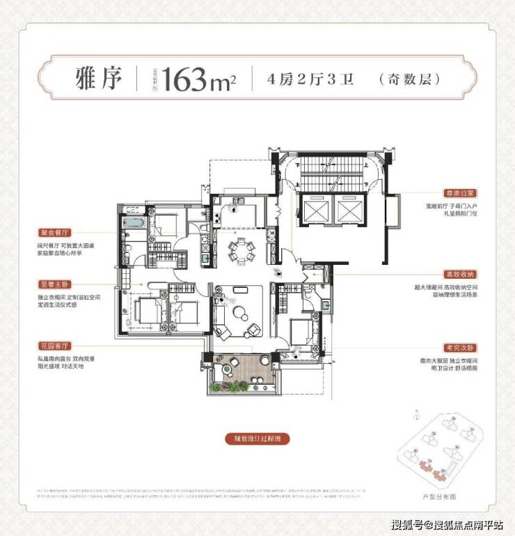 其精研产品创新与户型优化,推出 建面约163-218㎡的宋韵顶奢四代宅,兼具两大稀缺属性: