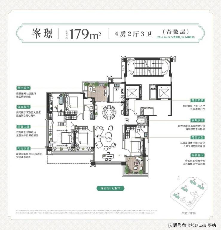 空中庭院“奇偶错层”布局:【奇数层】拥享“前庭后院”,南向方正露台衔接客厅,可做品茗休闲区、小花园,而北向露台衔接餐厨,更可用作聚会、生活、健身场域; 【偶数层】设计约7.6米超大南向露台,串联主次卧形成通透洄游动线,让家庭互动与私密需求达成动态平衡。售楼处:☎️☎️售楼处电话400-159-8559转6666【已认证】