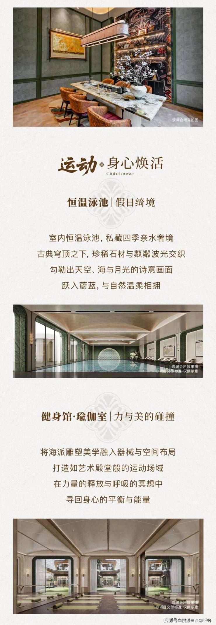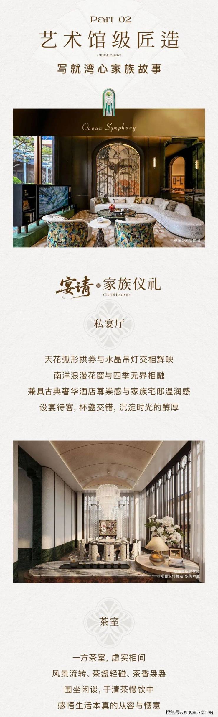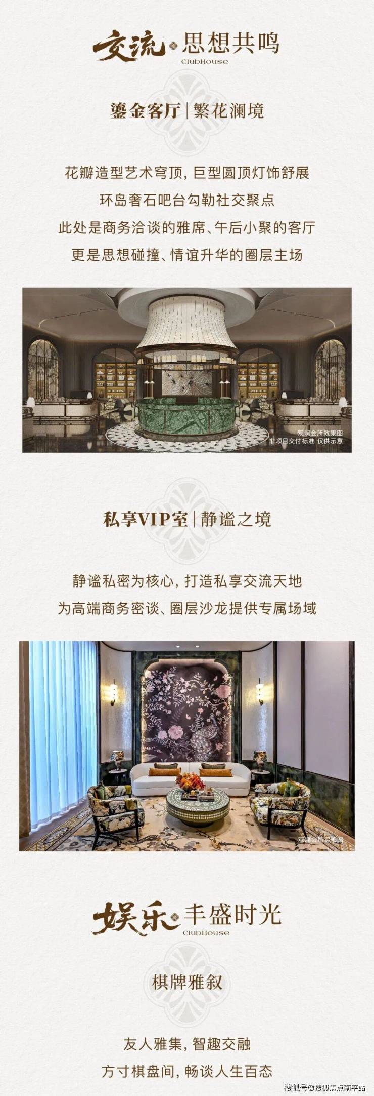 约4000㎡海派艺术会所,重新定义湾心圈层生活高度。出入电梯,云母石景墙与花砖拼花优雅过渡,恍若完成一次时空穿越后,抵达核心【鎏金会客厅】。空间以“繁花澜境”为主题,凤凰花的形态化作天花流动的艺术雕塑,巨星光影艺术装置与祖母绿奢石环岛吧台相映成趣...这仅是序章,未来更多会所场域逐一呈现,家族私宴厅、室内恒温泳池、茶室、运动空间......