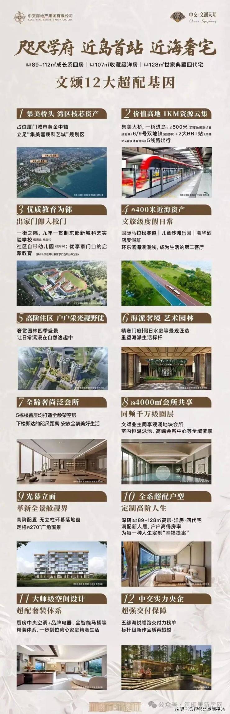 中交·文澜天玥以“三大藏品择址观”立基,以“六大产品定制观”为创作纲领,围绕建筑、园林、视野、空间、会所、精装等六大维度构建全龄体系。是厦门岛外首个海派南洋风高端改善产品。