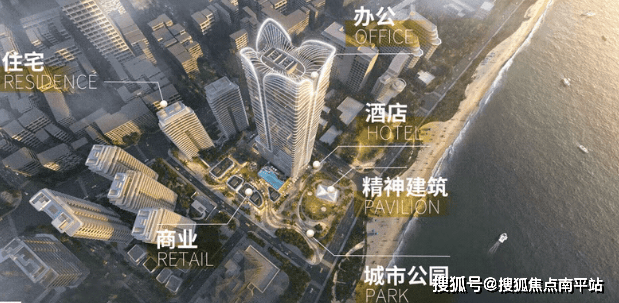 其中包括了6栋一线海景住宅、一栋约164米地标海景大平层以及4500㎡低层商业街区。