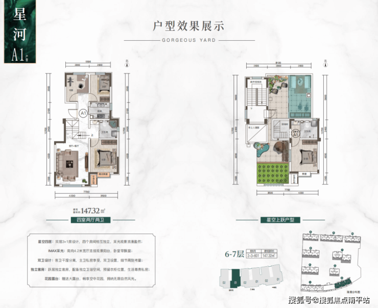 作为适配三代同堂的终极改善户型,金阳·金宇华庭6/7层顶楼复式将双层空间与星空露台完美融合,从根本上解决家庭居住矛盾,实现“各有空间、亲密相伴”的理想格局。上下双层阔绰动线,彻底划分动区与静区、世代与生活,完美适配全龄居住习惯: