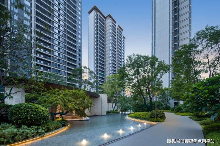 进入社区内部,10栋高层围合式布局,最大楼间距约95米,奢阔尺度释放出更大的园林场域,在此基础之上,项目打造涵盖主入口水庭、中央会客厅、主入口水庭、中央会客厅等多层次的「森屿度假园林」。