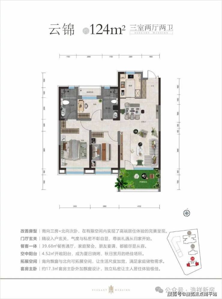 ➢规划:三室朝南丨3.1M质感层高丨赠送可封闭阳台+可拓展空间