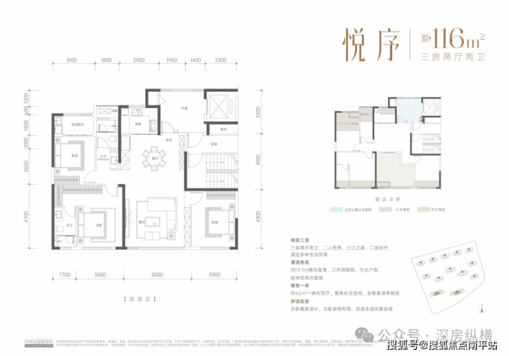 建面116㎡3居:150-165万,2梯2户,层高3米,总楼层32F;