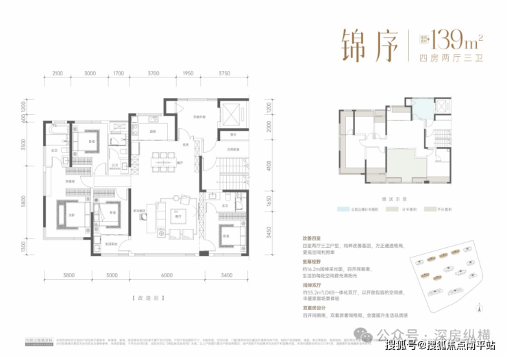 建面139㎡4居:205-220万,2梯2户,层高3米,总楼层24-32F;