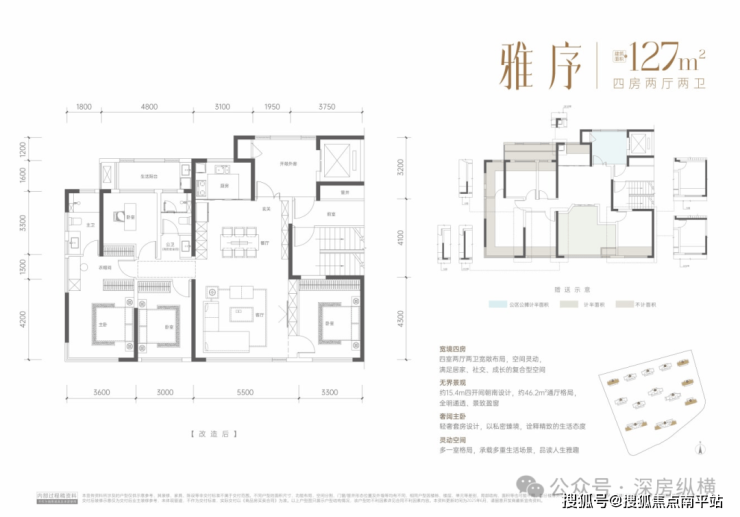 建面127㎡4居:180-200万,2梯2户,层高3米,总楼层30-32F;