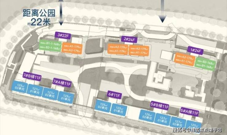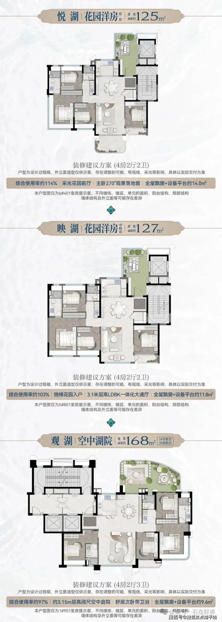 项目容积率仅2.4,户型规划有面积 125-127㎡亲湖花园洋房 与 168-179㎡瞰湖四代宅。