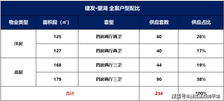 建发望湖项目共规划6栋住宅楼,其中3栋高层、3栋洋房, 高层住宅134套,洋房住宅100套,合计234套。