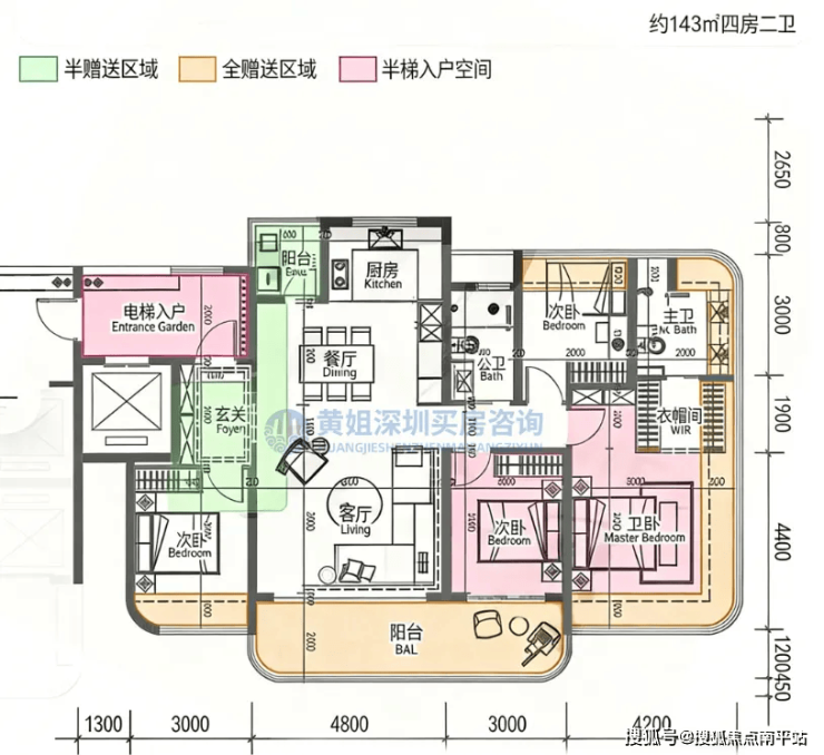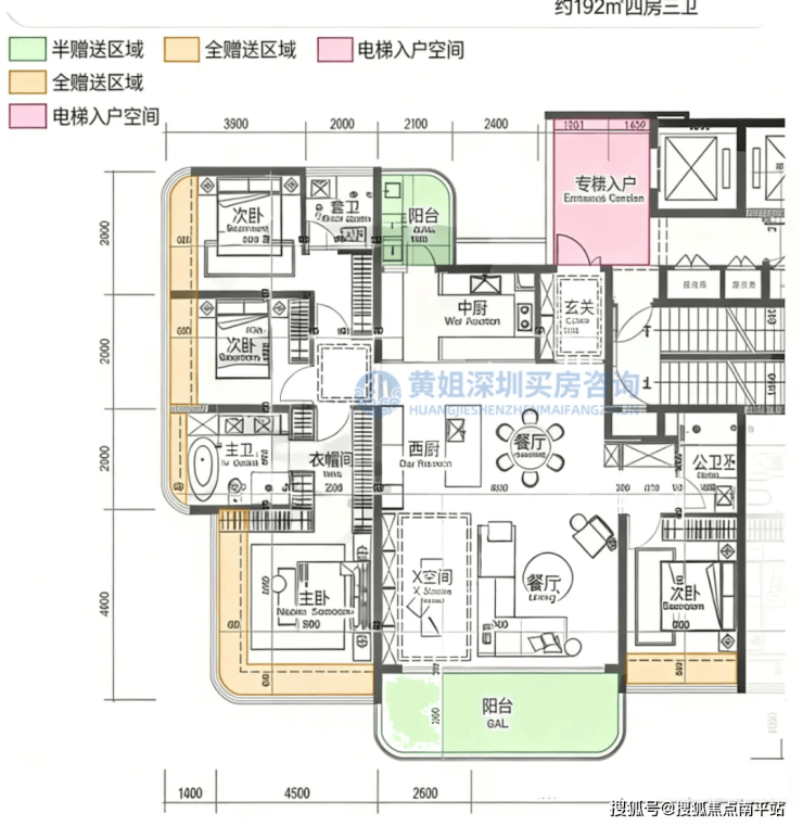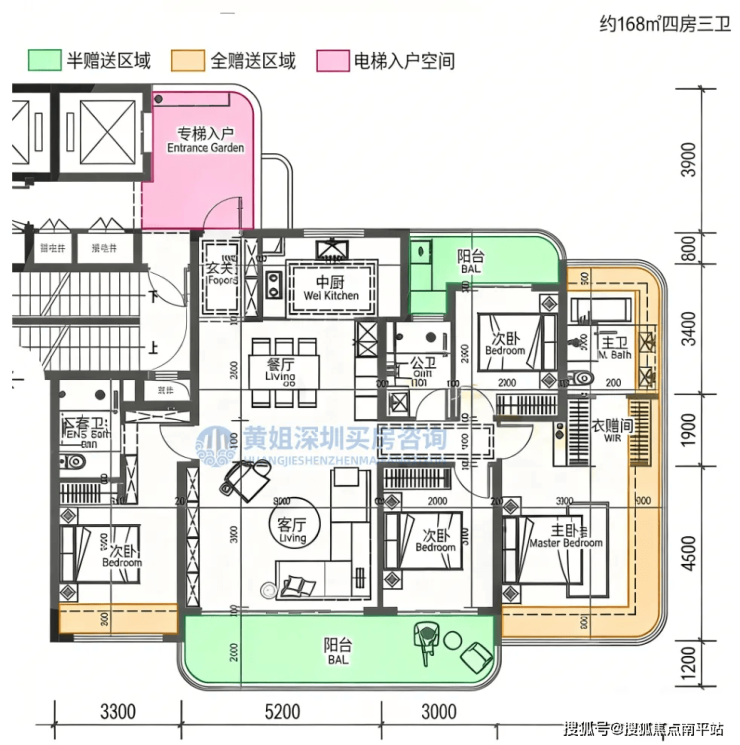朝向以东南/西南为主,部分单元可将前海湾、摩天轮及城市天际线纳入视野,既兼顾家庭居住的温馨实用性,又能享受顶豪级景观体验,适配三代同堂高端改善需求。
