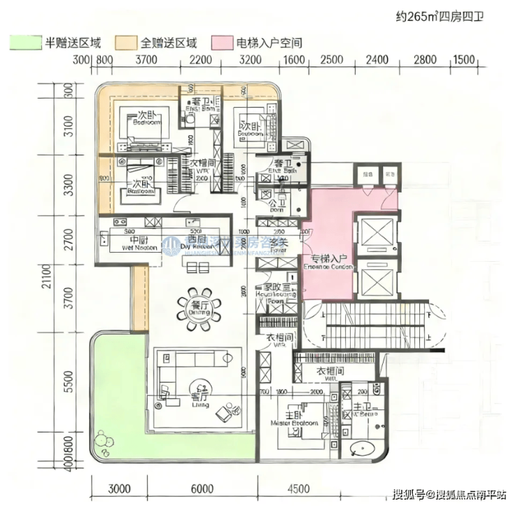 终极置业顶奢藏品,深圳新一代豪宅的标杆之作。该户型坐落于楼栋最佳位置,不仅拥有270°环幕海景阳台,可全方位饱览 前海三湾 的壮丽景色,最大化满足高净值人群的极致居住与社交需求。
