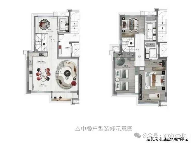 【中叠】约达15.4米总户开间设计,打造了客餐区嬉戏、主次卧休憩、楼上楼下分层生活场景,形成了一种私密且舒适的居住环境,真正做到了空间与生活的融合,满足一家人对功能的所有想象。