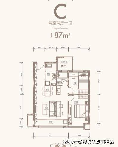 【户型】两室一厅一卫87㎡