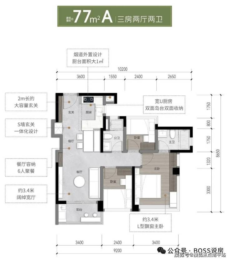 88㎡户型:7米超长阳台+12㎡餐厨一体化,满足家庭欢聚场景