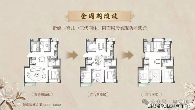 北向的X空间可随家庭结构变化,从工作间、书房、卧室、餐厅等灵活转变,满足新婚、育儿、三代同堂不同时期的需求。这种前瞻性设计,让82-113㎡的小户型洋房,真正实现了一次置业、终身适用的理想生活图景。