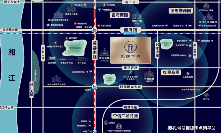 【地铁】项目拥有双地铁的配套——省政府清风站和桂花坪站。省政府站是地铁1号线和未来地铁8号线的换乘枢纽,无缝连接2、3、4、6号线及长株潭城际铁路线,通达长沙市内各个角落。