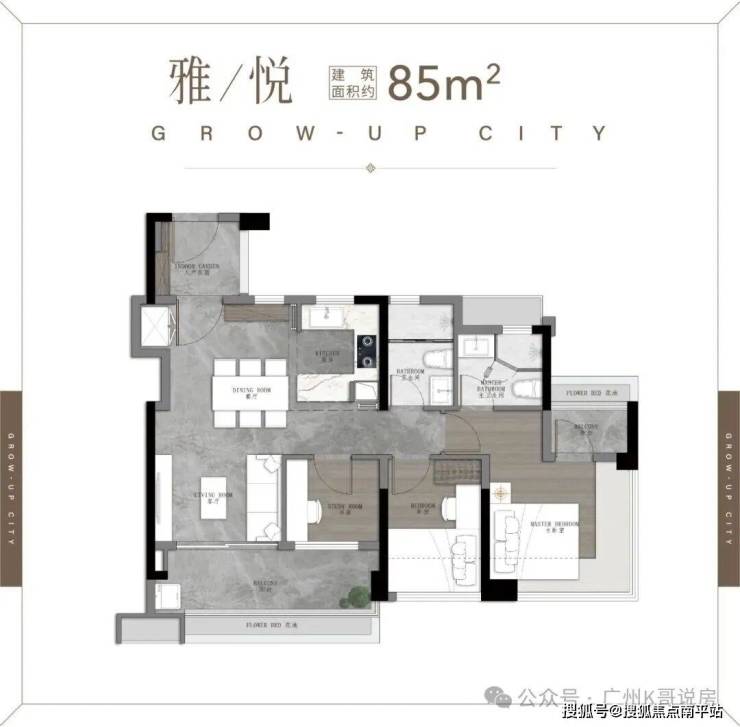 75㎡三空间两卫,年轻人主城上车首选 ,四开间朝南 全明转角玄关 开放式厨房,开阔景观阳台 南北对流主套&衣帽间。