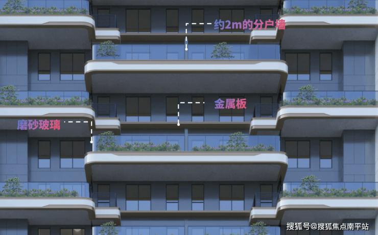 2、光影结界,私密无忧:星湖玥创新设置了透光不透视的磨砂玻璃+大面积遮私挡板,进行错层露台间的视觉隔离,最大限度保证隐私。