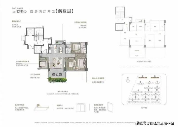 小高层户型,建筑面积约129-139㎡的四代小高层,采用错层挑高设计,配备空中花园与私梯入户,并拥有约3米的层高配置,全方位提升空间的别墅级居住体验。