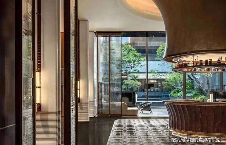 下沉庭院,景观以五重造境艺术为魂,千银筑基,万银注水。错落有致的亭台布局与飞瀑池水相映成趣,自然的磅礴气势与金属质感的景观细节碰撞交融,尽显闽南山海地质的蓬勃生命力。融合五重造境艺术灵感、奢石精粹臻选石材、万博闽南非遗匠艺,既彰显社交空间的活力,又传递自然界的静谧。