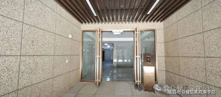 单元入户大门配备了人脸识别系统,入户大堂全部采用瓷砖+吊顶装饰,整体感觉不错。