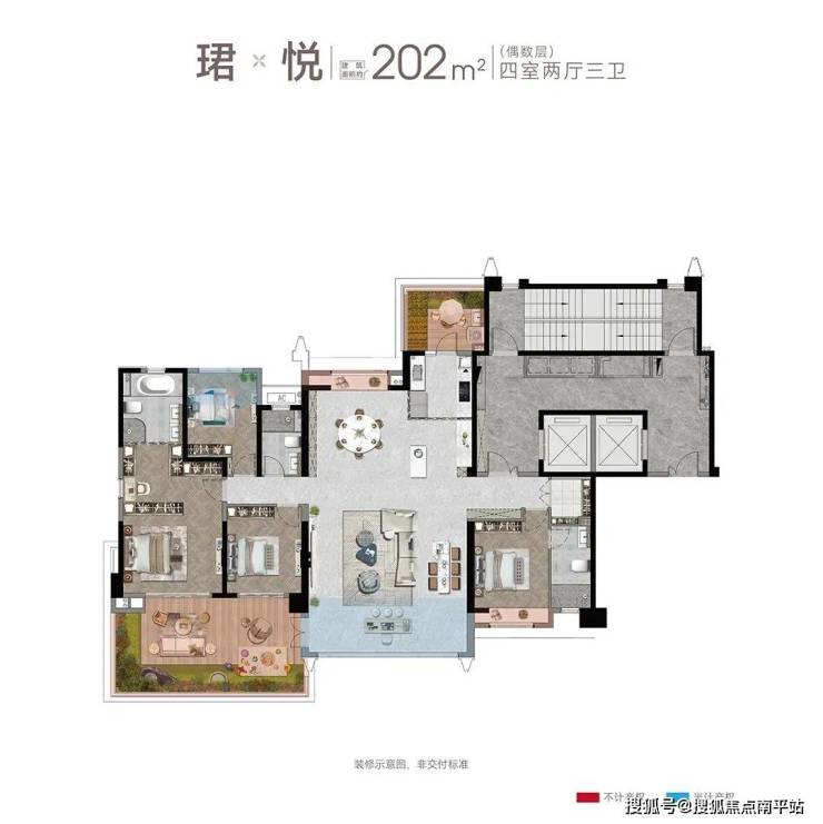 建面约202㎡四房两厅三卫(偶数层)