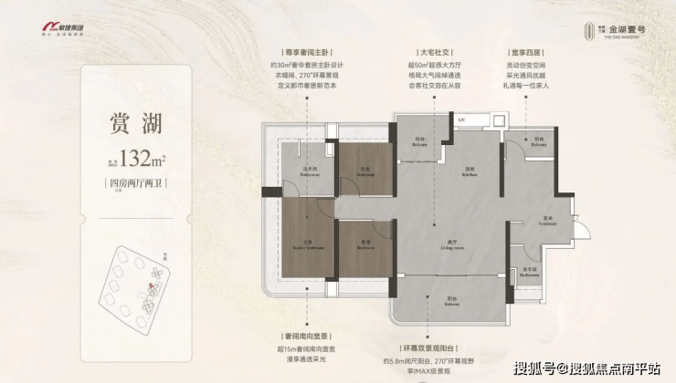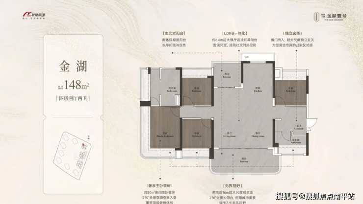 约98-148㎡全南向湖居四房,对标当代华宅范本,创变居住空间的新想象;全南向新规的突破、环拥天地的居住空间、精工雕琢细节之美,打造湖居理想之家,为万博CBD钜献湖居壹号作品。