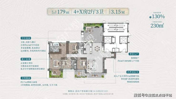 179平做四房可改五房!客厅面宽约5.5米,奇数层露台延伸客厅面宽可达9.2,层高3.15米