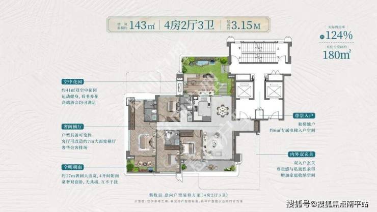 产权面积143平,综合使用率约126%,使用面积约180平;