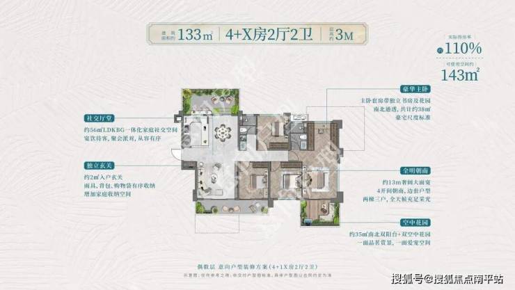 96平~133平层高3米