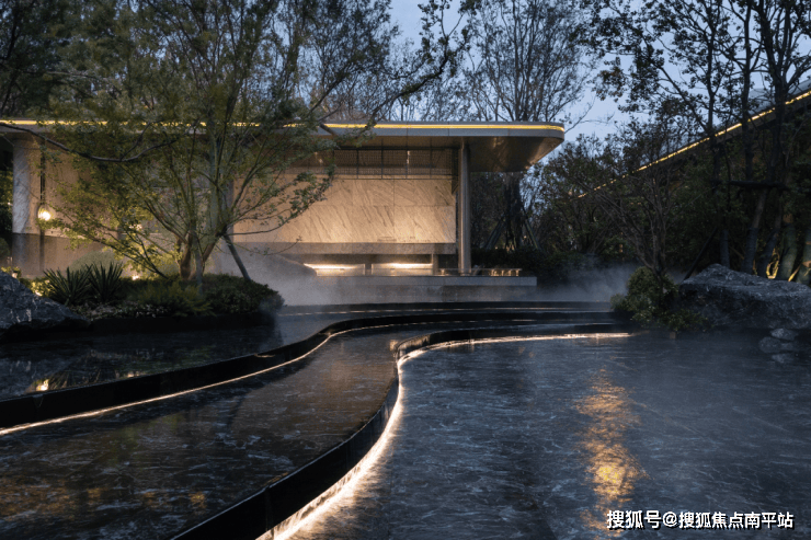 规划四重尊崇归家动线,从“府门”到“中轴”“架空层”再到“首层艺术大堂”,结合自然森境、水景叠瀑等元素,营造出高雅、舒适的归家氛围,地下归家大堂采用“劳斯莱斯星空顶”设计,强化豪宅质感。