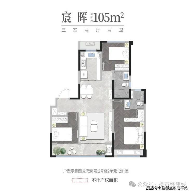 宸晖 建面约105㎡舒朗三室(2#小高层中间户)