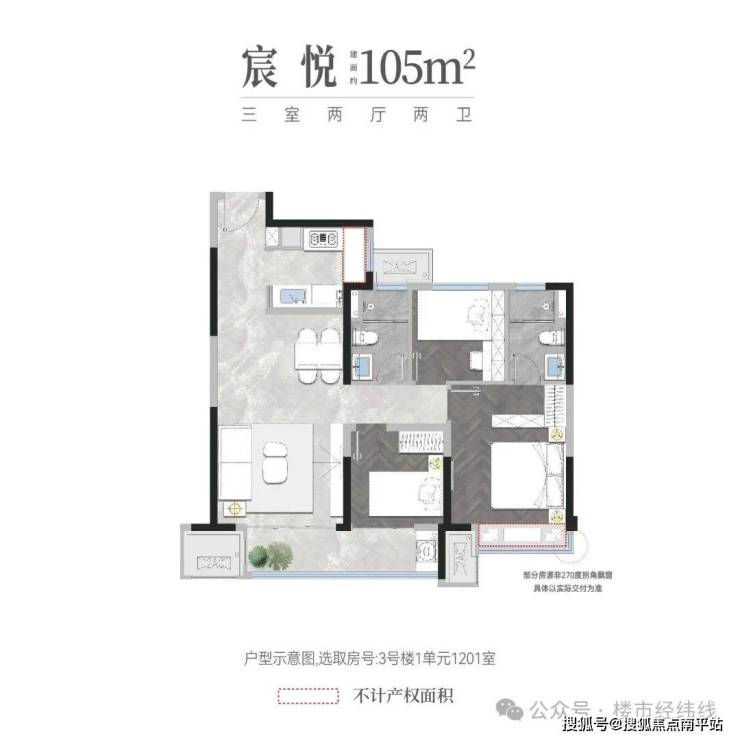 宸悦 建面约105㎡精致三室(3#高层户型)